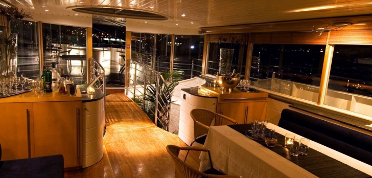 Dans ce cadre exceptionnel, profitez de prestations sur-mesure en toute intimité, au large salon intérieur équipé d’une technologie de pointe et à son pont supérieur de 80m² avec accès au jacuzzi.