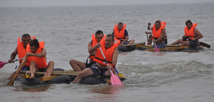 Organisation de la course en radeaux.