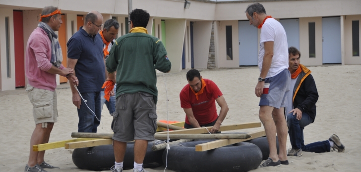 Les équipes fabriquent les radeaux.