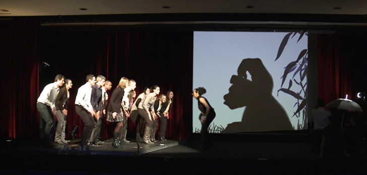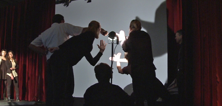 Les candidats sont initiés aux techniques des ombres chinoises et des percussions corporelles, et ils répètent leur pièce.