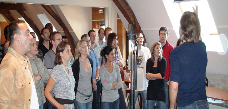 Les participants sont initiés aux techniques de chant par un coach musical.