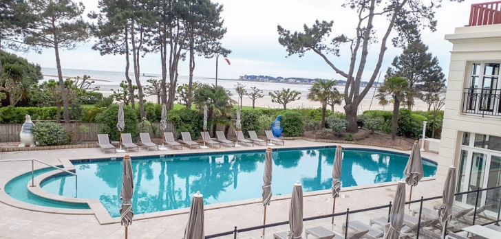 Entièrement rénové en 2018, il dispose de 3 salons "Belle Époque", un restaurant sur la plage avec 100 places assises, une brasserie élégante, un jardin aménagé en été et un service traiteur pour un total de 430 couverts. Thalassothérapie, 2 piscines d’eau salée, animations sportives et casino.